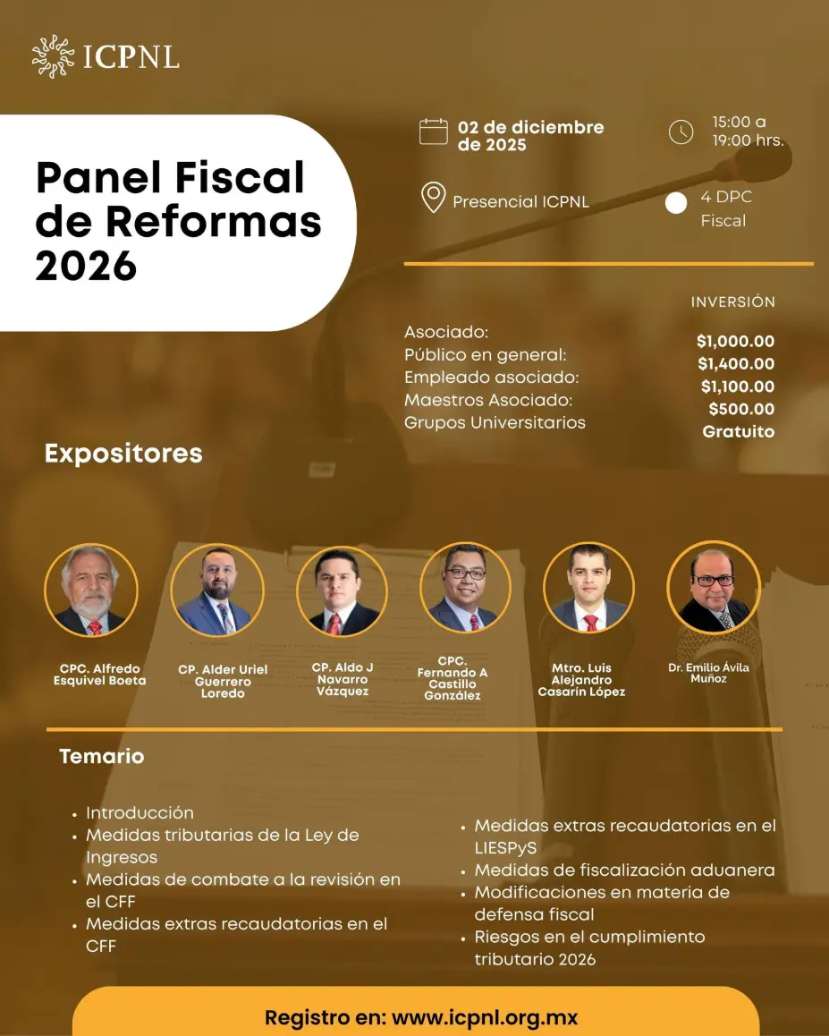 Evento Presencial - Fecha: 02 de diciembre del 2025 - Horario: 15:00 a 19:0hrs - DPC: 4 - Materia: Fiscal