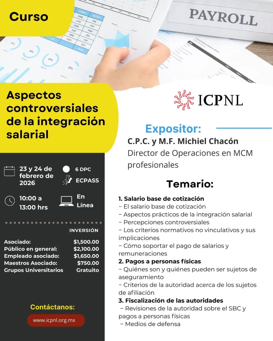 Aprende a integrar, en forma adecuada, tus salarios base de cotización, a efecto de disminuir riesgos en el cumplimiento de tus obligaciones ante el Seguro Social, documentando adecuadamente conforme a la ley y reglamentos de la materia, así como los criterios normativos, el otorgamiento de remuneraciones a los trabajadores y los pagos a personas físicas.