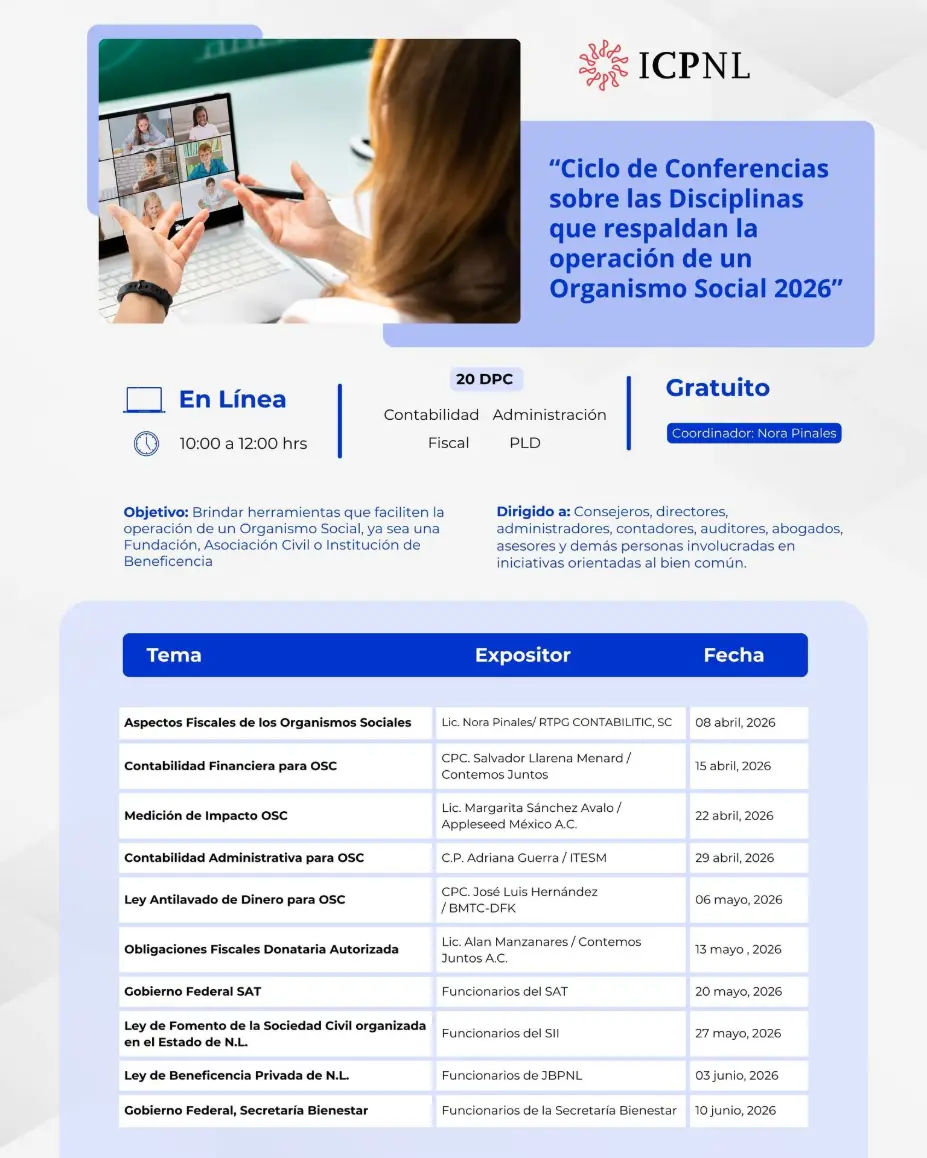 Ciclo de Conferencias sobre las Disciplinas que respaldan la operación de un Organismo Social 2026
