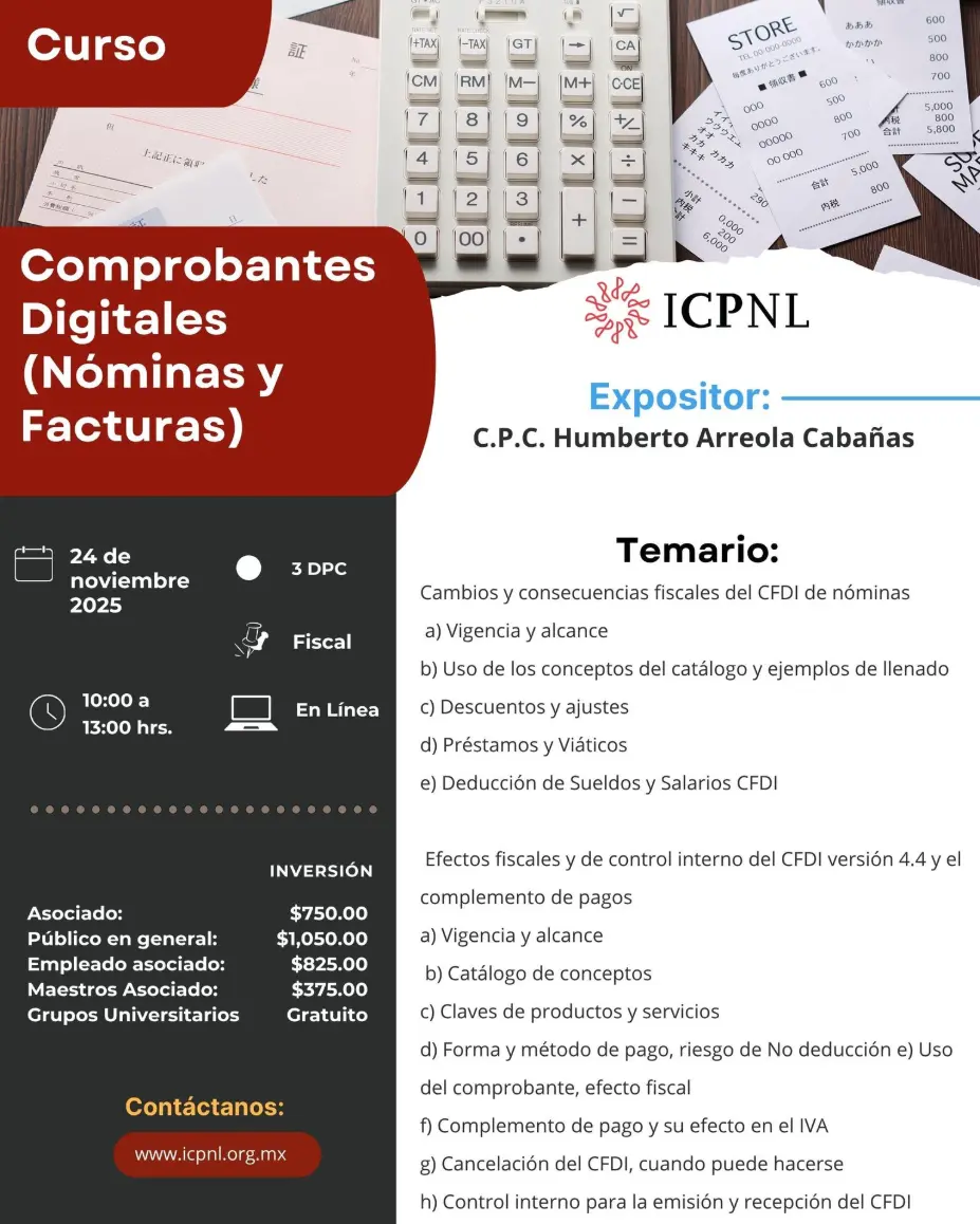 Evento en Línea- Fecha: 24 de noviembre del 2025- Horario: 10: 00 a 13:00hrs - DPC: 3- Materia: Fiscal