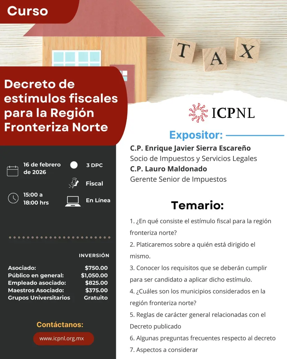 Evento en Línea- Fecha: 16 de febrero del 2026- Horario: 15: 00 a 18:00hrs - DPC: 3 - Materia: fiscal