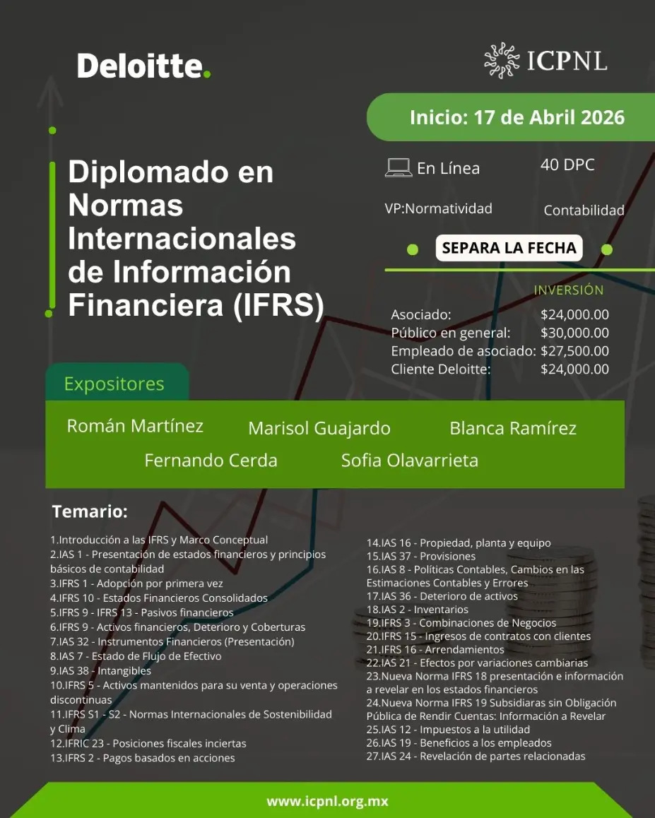 Evento en Línea - Fecha: 17 de abril a 26 de junio del 2025 - Horario: 09:00 a 13:00hrs - DPC: 40 - Materia: Contabilidad
