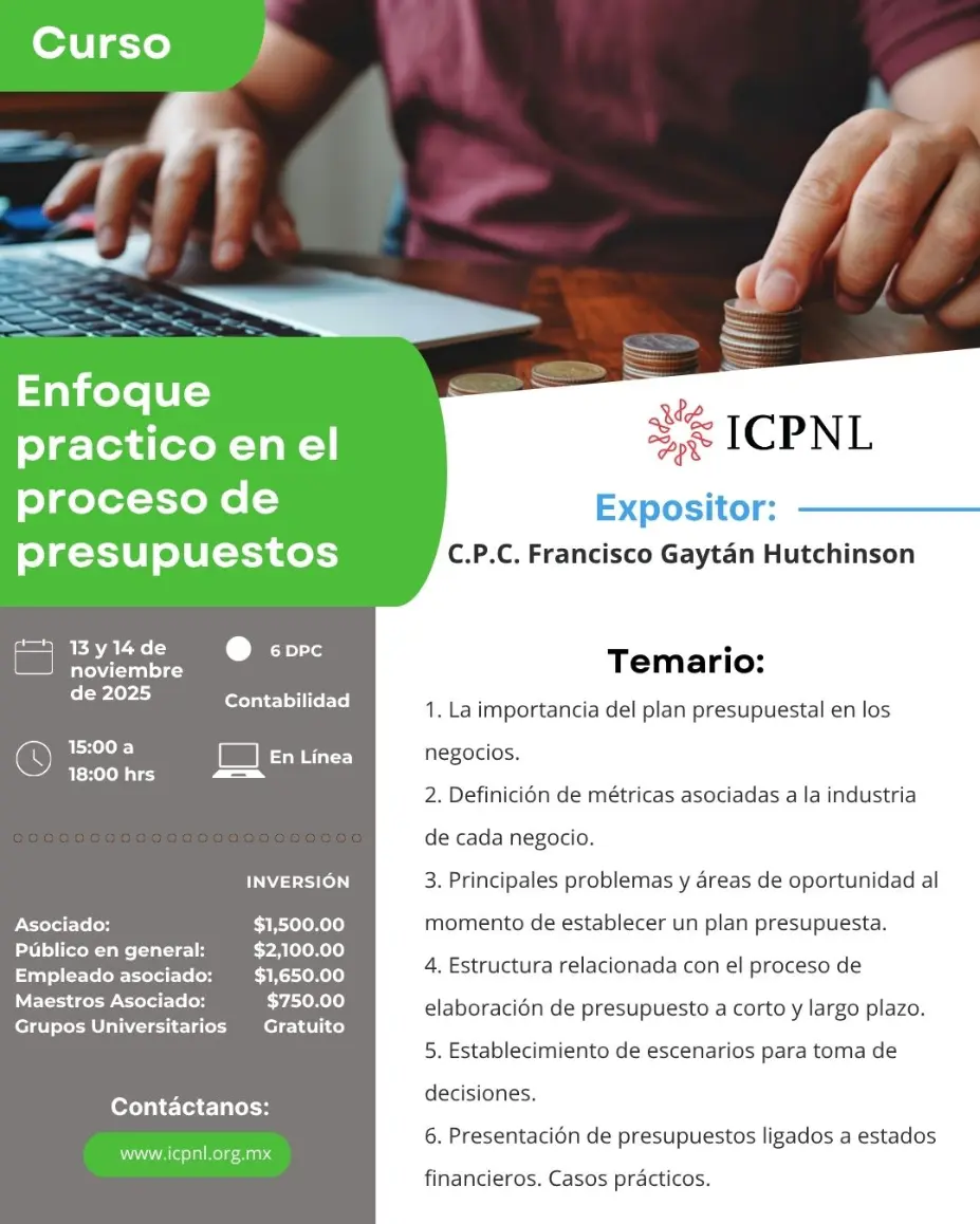 Evento en Línea - Fecha: 13 y 14 de noviembre del 2025 - Horario: 15:00 a 18:00hrs - DPC: 6 - Materia: Contabilidad