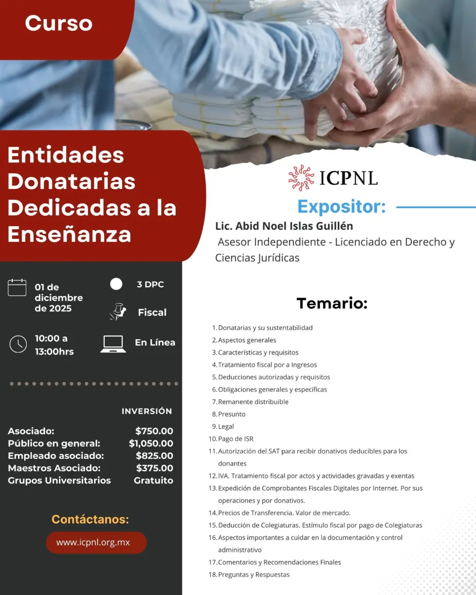 Evento en Línea - Fecha: 01 de diciembre del 2025 - Horario: 10:00 a 13:00hrs - DPC: 03 - Materia: Fiscal
