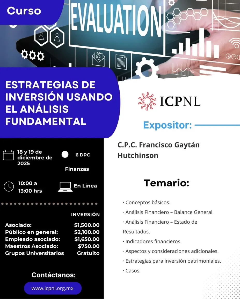 Evento en Presencial - Fecha: 18 y 19 de diciembre del 2025 - Horario: 10:00 a 13:00hrs - DPC: 6 - Materia: Finanzas