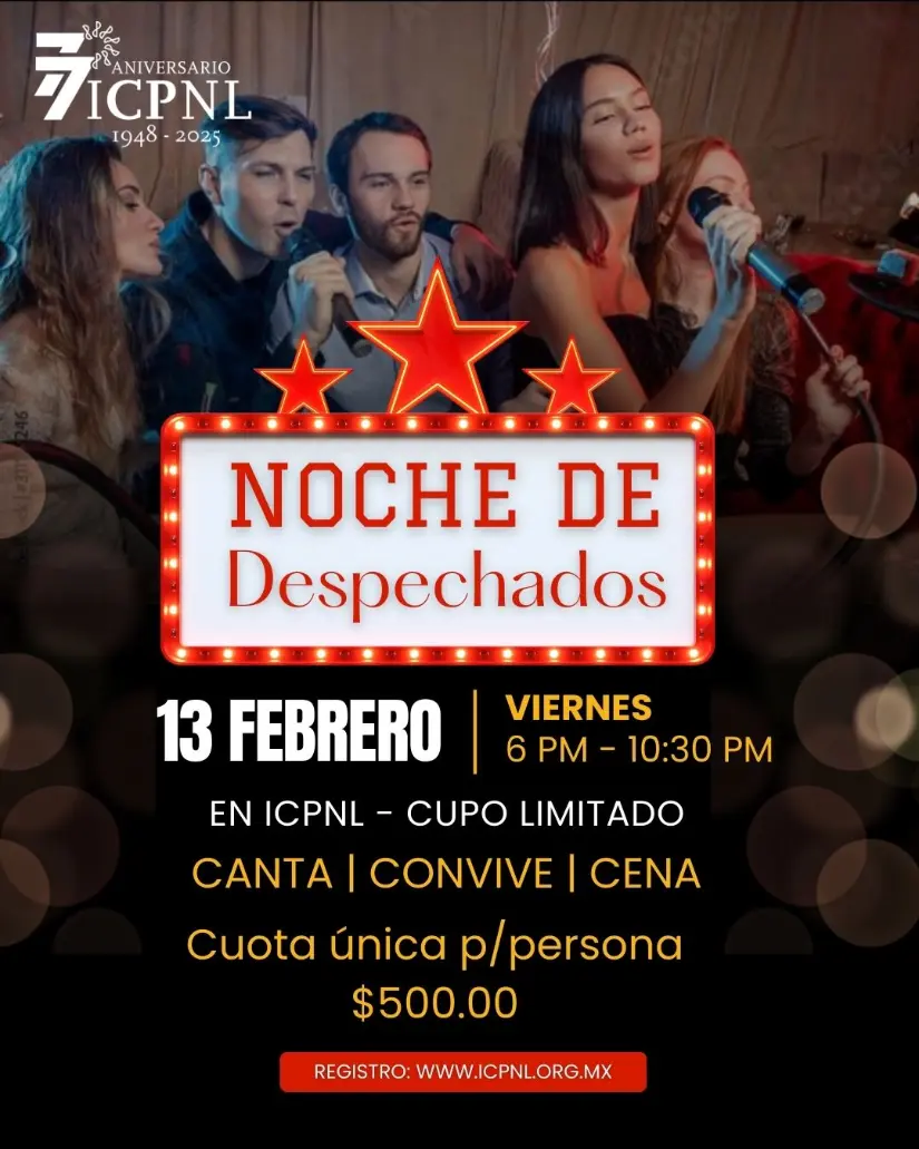 Evento Presencial- Fecha: 13 de febrero de 2026- Horario: 18:00 a 22:30 hrs. - Lugar: Salas de Capacitación del ICPNL