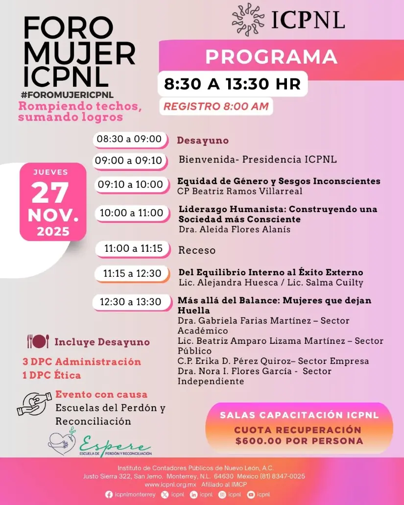 Evento Presencial ICPNL - Fecha: 27 de noviembre de 2025 - Horario: 08:30 a 13:30 hrs. - DPC: 03 Administración y 01 Ética y Responsabilidad Profesional