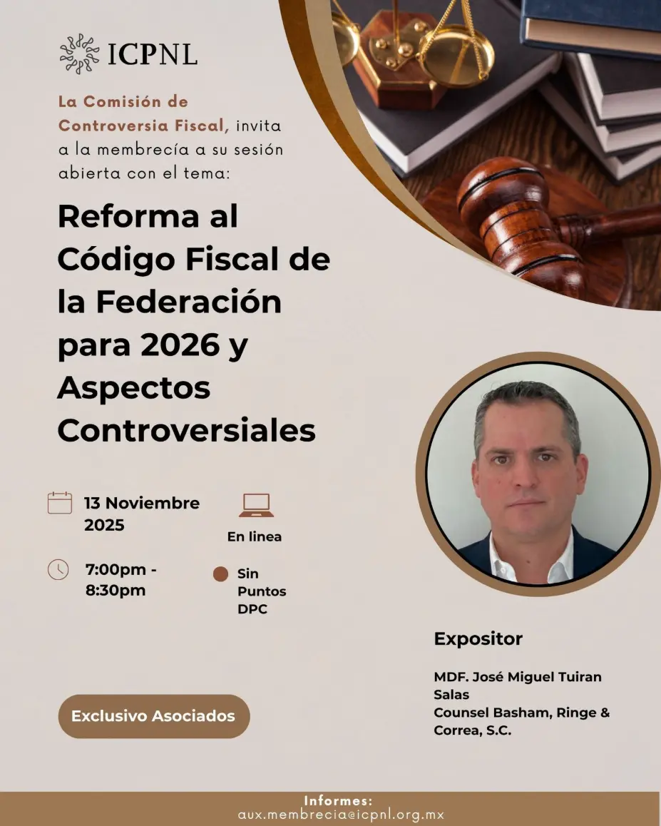 La Comisión de Controversia Fiscal, invita a la membrecía a su sesión abierta con el tema: Reforma al Código Fiscal de la Federación para 2026