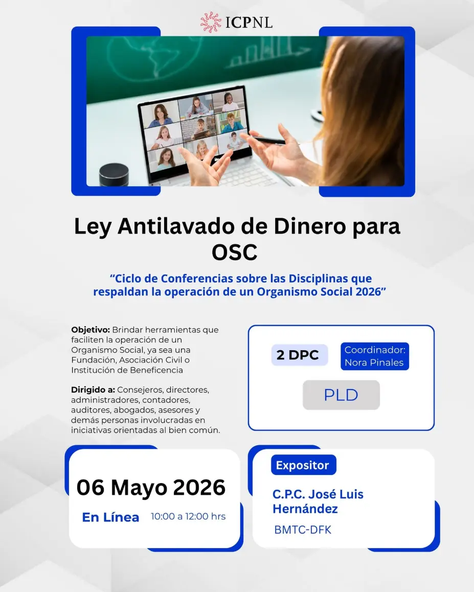 Evento en Línea - Fecha: 06 de mayo del 2026 - Horario: 10:00 a 12:00hrs - DPC: 2 - Materia: PLD