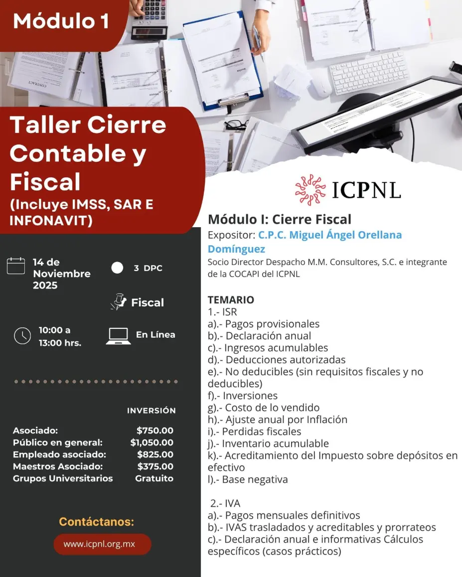 Evento en Línea- Fecha: 14 de noviembre del 2025- Horario: 10: 00 a 13:00hrs - DPC: 3 - Materia: Fiscal