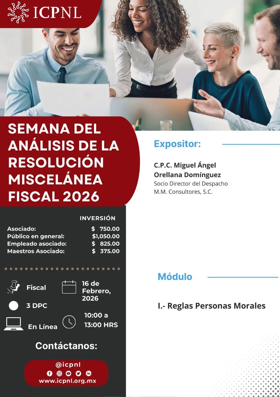 Evento en Línea- Fecha: 16 de febrero del 2026- Horario: 10: 00 a 13:00hrs - DPC: 3 - Materia: Fiscal