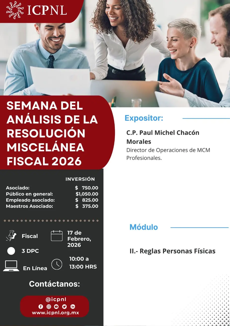 Evento en Línea- Fecha: 17 de febrero del 2026- Horario: 10: 00 a 13:00hrs - DPC: 3 - Materia: Fiscal