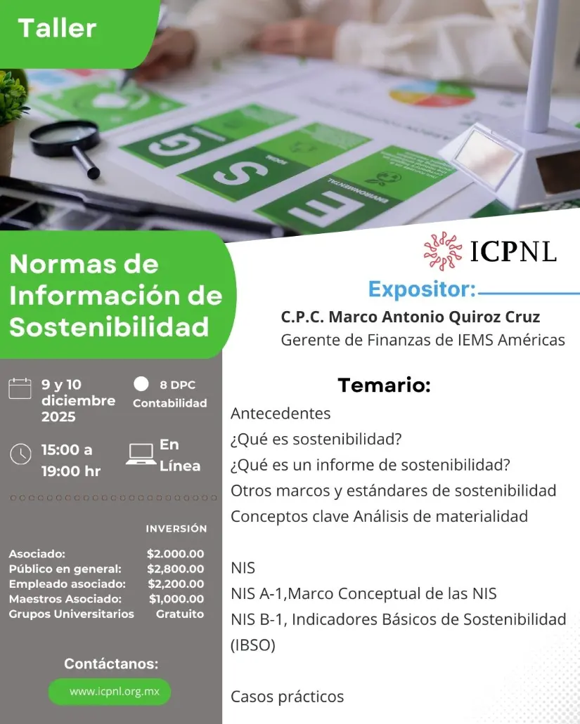 Evento en línea - Fecha: 09 y 10 de diciembre de 2025 - Horario: 15:00 a 19:00 hr. - DPC: 08 - Materia: Contabilidad