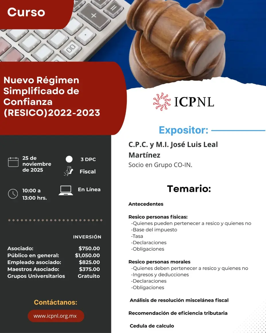 Evento en Línea - Fechas: 25 de noviembre del 2025 - Horario: 10:00 a 13:00hrs - DPC: 3 - Materia: Fiscal