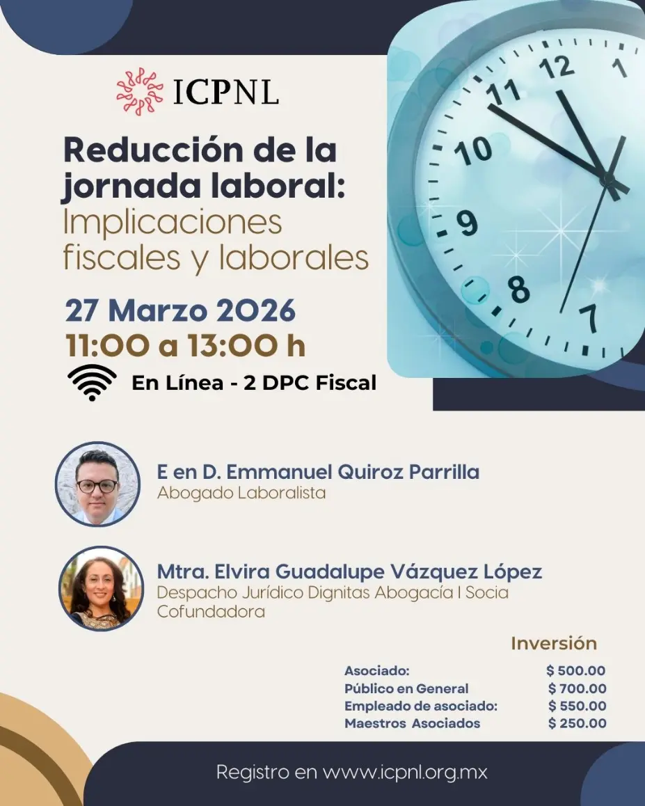 Evento en línea - Fecha: 27 de marzo de 2026 - Horario: 11:00 a 13:00 hrs. - DPC: 02 Materia: Fiscal